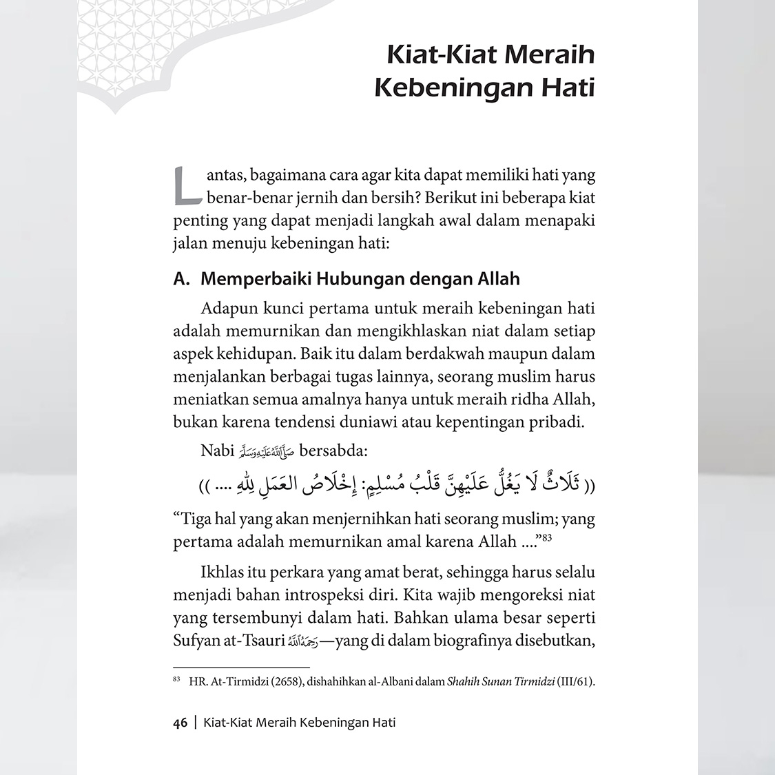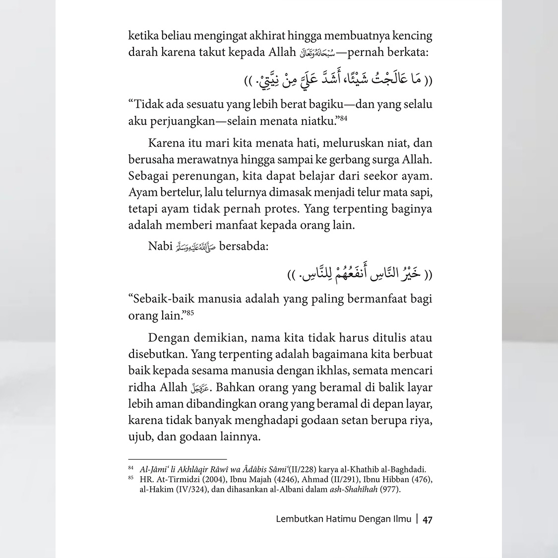 Ditulis dengan bahasa ringan, buku ini adalah panduan praktis untuk menjadikan ilmu sebagai sarana menyucikan hati, menumbuhkan keikhlasan amal, dan meraih ridha Allah Ta’ala. Wajib dimiliki tiap penuntut ilmu!